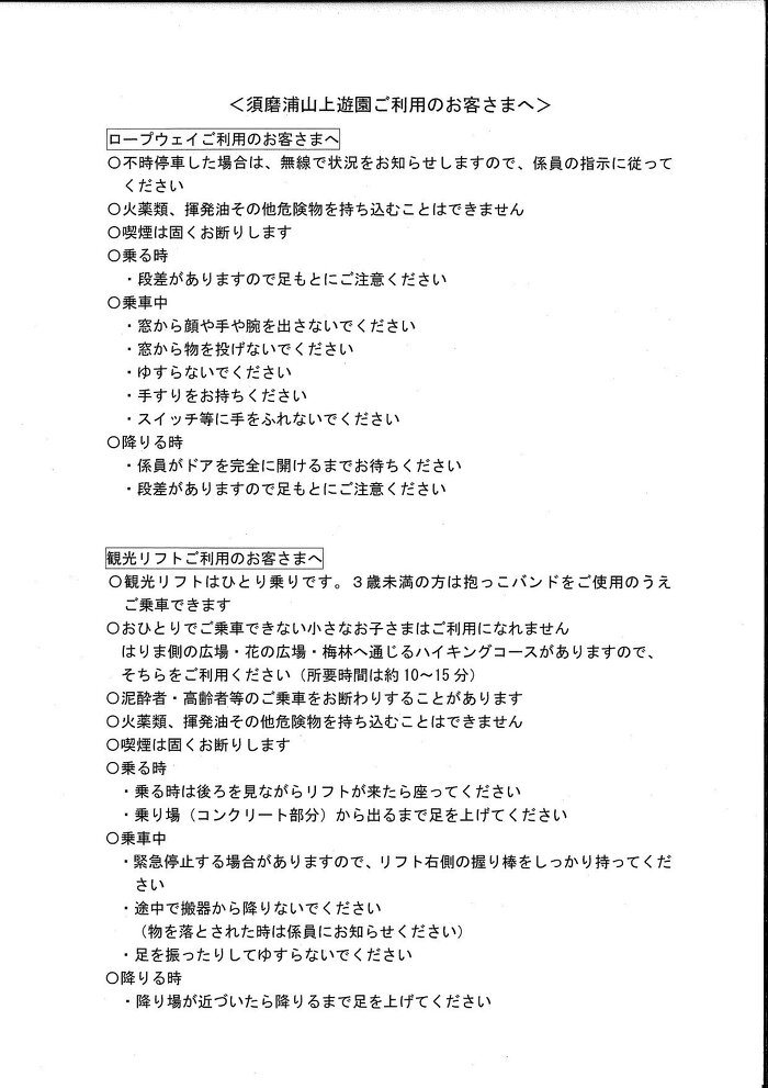 いつも須磨浦山上遊園をご利用いただきありがとうございます。