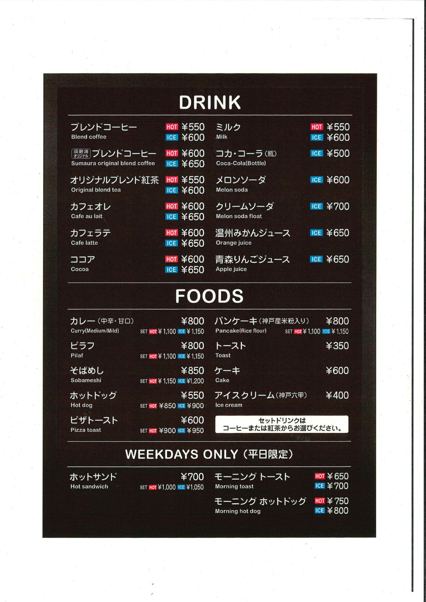 昨今の原材料や資材、エネルギー価格の高騰によるコスト上昇に伴い、喫茶コスモス・BBQコーナーでは、商品の価格を改定させていただきます。